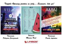 Triple opening party in July. All with V-Prof sound equipment. Don´t miss them!